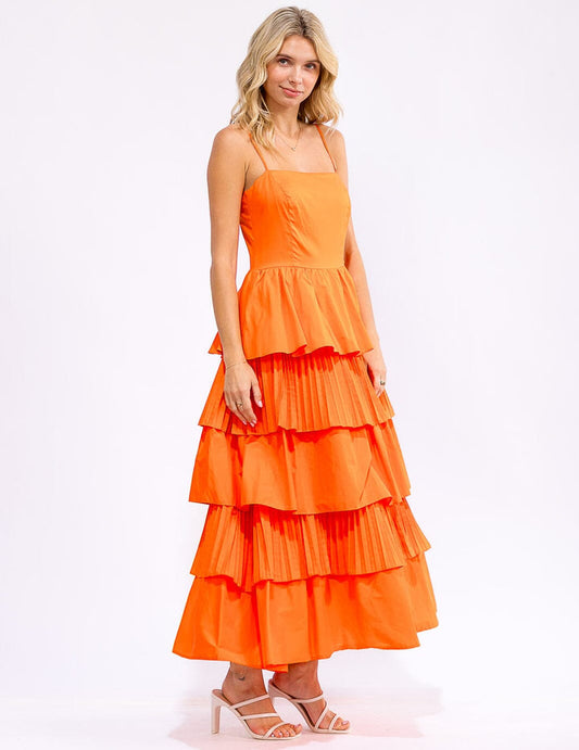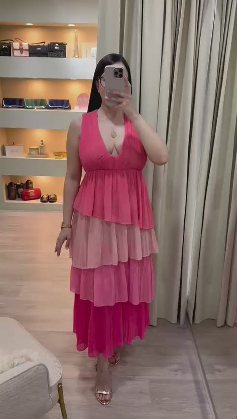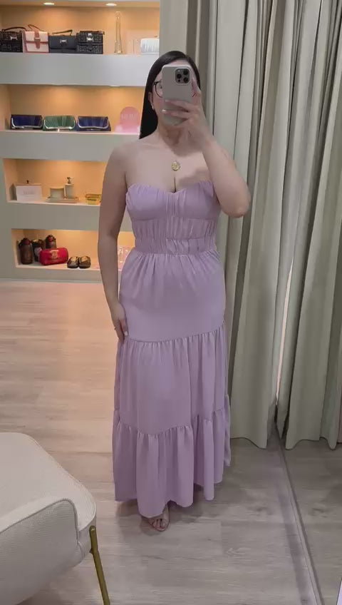 Vestido maxi morado sin mangas para mujer con smock y diseño en capas (tiered).