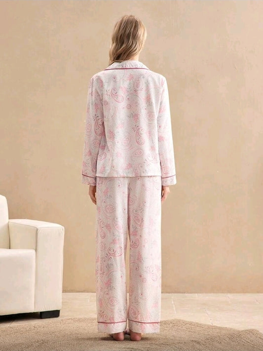 Pijama rosada con estampado floral de pantalón y camisa manga larga