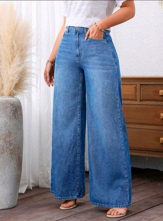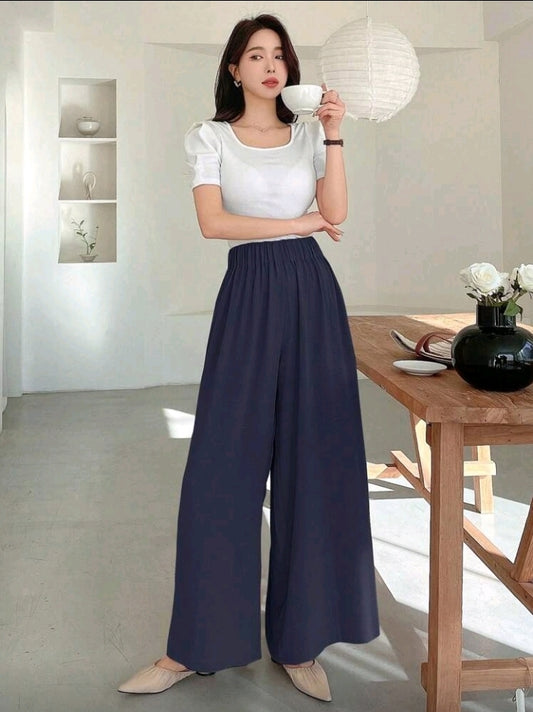 Pantalon azul oscuro ancho y relajado con cintura elástica