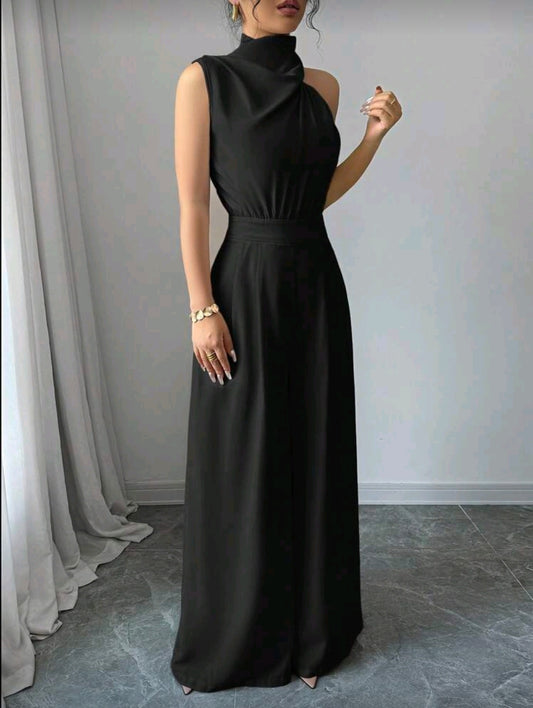 Pantalones Negros de Pierna Ancha y Cintura Alta
