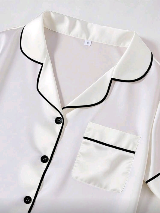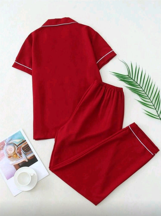 Pijama roja de pantalón y camisa manga corta con detalles blancos