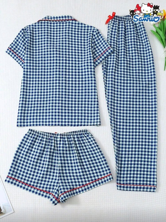 Pijama azul cuadriculada de Hello Kitty de 3 piezas