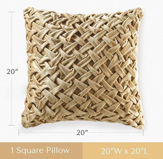 Winchester Décor Pillow, Luxurious Vintage Ruched Velvet, Removable Cover, 100% White Goose Feather Décor Pillow, 233TC 100% Cotton Down Proof Cover, Winchester, Square 20x20, 1 Almohada Dorada