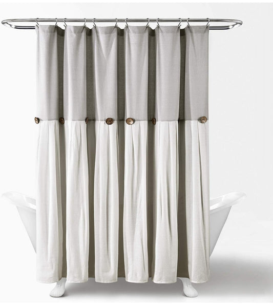 Lush Decor Linen Button Shower Curtain, 72" W x 72" L, Gray & Off White - Gray Shower Curtain Fabric - 1 cortina de baño, Blanco/Gris