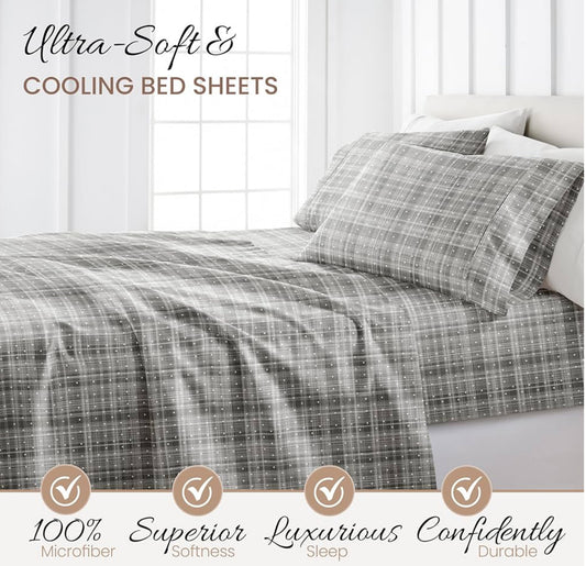 Linen Market Double-Brushed Patterned Microfiber California King Sheet Set 4 Piece – Oeko-TEX Certified Ultra Soft & Wrinkle-Free - 16" Deep Pocket Sheets Easy Care Cal-King Size - Polka Dot Gray. 2 pillowcases and 1 fitted sheet