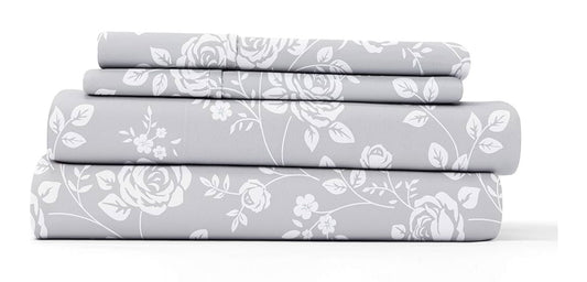iEnjoy Home Hotel Collection Premium Ultra Soft Rose Gray Pattern 4 Piece Bed Sheet Set Cal KING: 2 pillowcases, 1 fitted sheet and 1 flat sheet