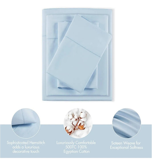 Madison Park Cotton Sheet Set, Soft & Breathable 500TC Egyptian Cotton Sheets, All Seaons Elastic Deep Pockect Sheet Set, Lightweighted 100% Egyptian Bed Sheets, King, 4 Piezas, Azul