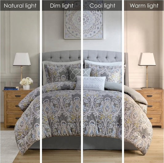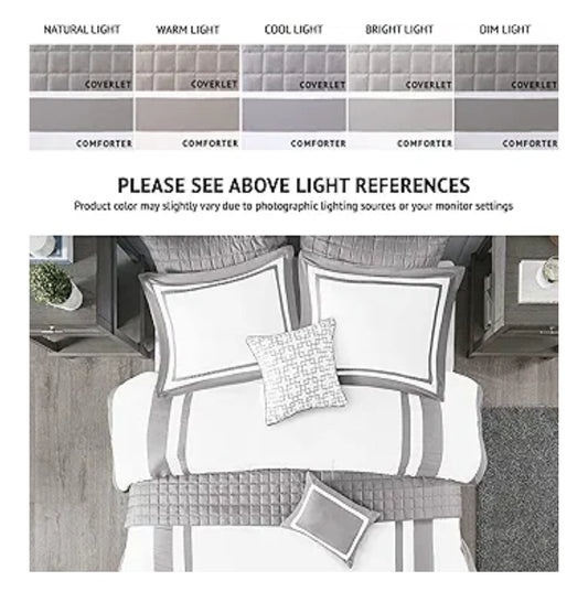 Madison Park Heritage Comforter Quilt Down Alternative King/Cal King 104"x92" Color Block 8 Piece Gris