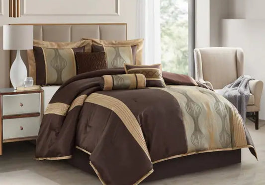 Nanshing Daniella 7-Piece Modern Geometric Comforter Set - King, Cafe