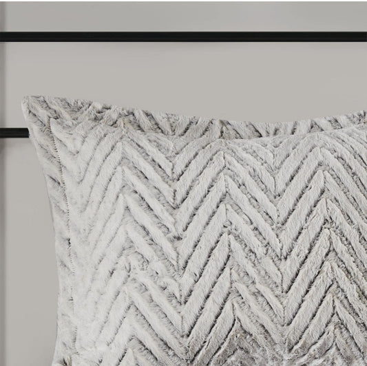 Madison Park Polyester Adelyn Brushed Long Fur Duvet Cover Set, 3 Piezas, Gris, King