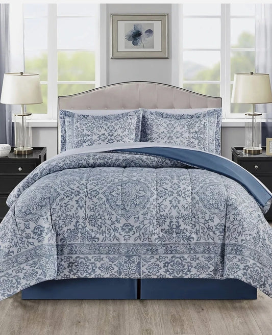 Hallmart Comforter Set, Beren - Blue/Tan/Ivory, 7 Piezas, King, Azul