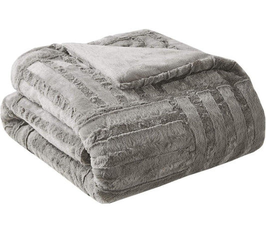 Madison Park Arctic Luxury Ultra Alternative Throw 50x60 Geometric Premium Soft Cozy Long Fur Plush For Bed, Couch or Sofa, 50 in x 60 in, Gris, Colcha