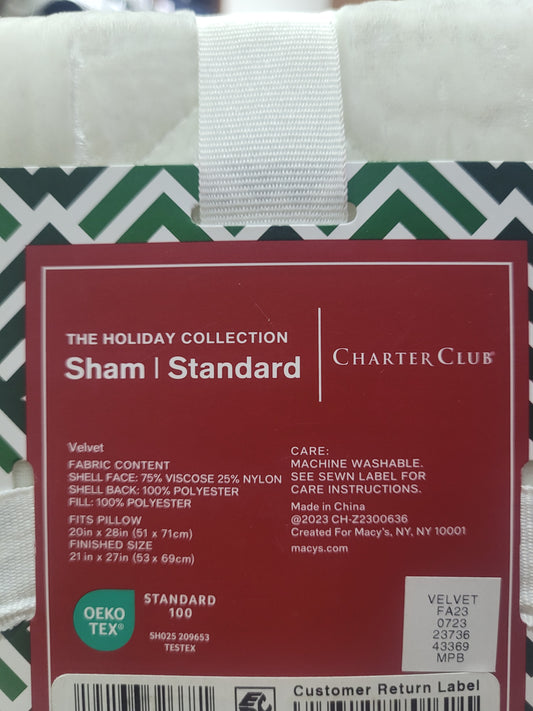 Charter Club Velvet Sham, Standard, 1 Cubre Cojín Blanco