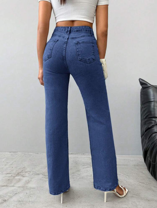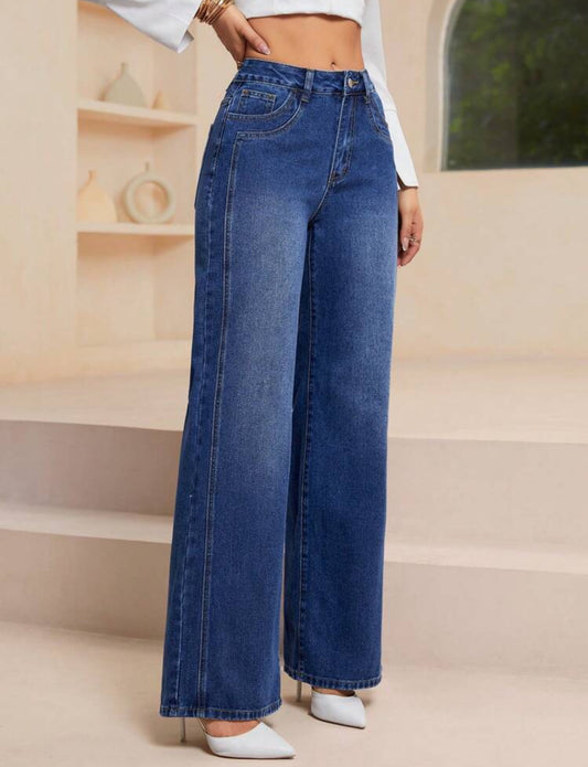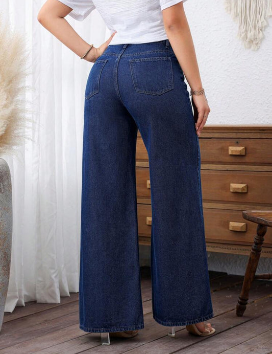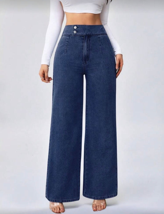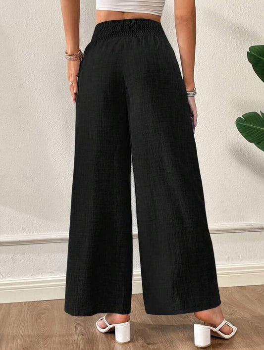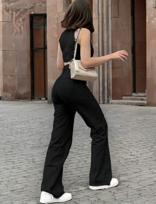 Pantalones Negros de Pierna Ancha y Cintura Alta