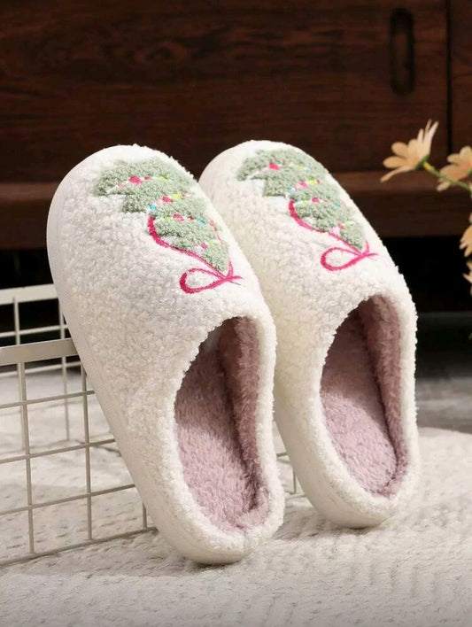 Pantufla Blanca de Arbol de Navidad con Chongo
