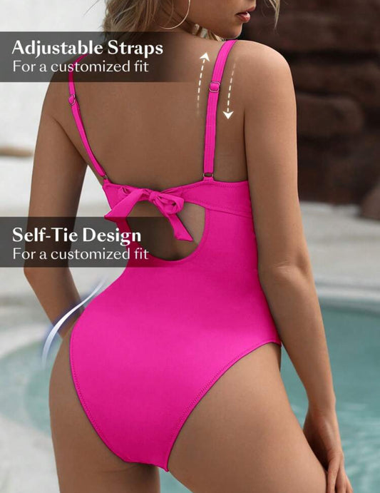 Traje de bano rosado con push up y control abdominal