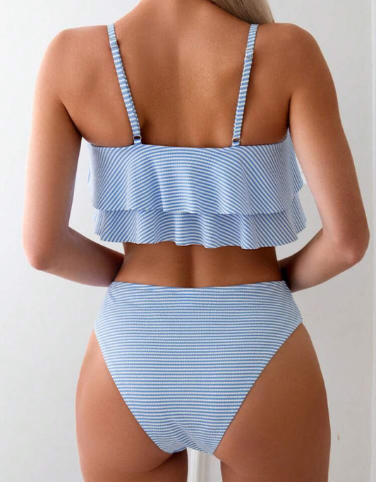 Traje de bano azul celeste y blanco