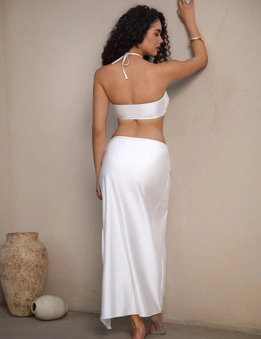 Traje de bano dos piezas y salida color blanco
