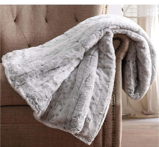 Christian Siriano NY® Snow Leopard Faux Fur Throw in Gift Box, 1-Piece Giftable Throw Blanket, Oeko-TEX Certified Confidence, 1 Sabana Gris