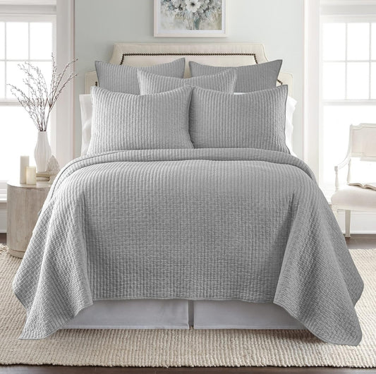 Levtex Home Cross Stitch Reversible Twin XL/Twin Quilt Set (68x86in) and 1 Pillow Sham (26x20in) - Stitch Texture - 2 Piezas, Gris Claro, Twin