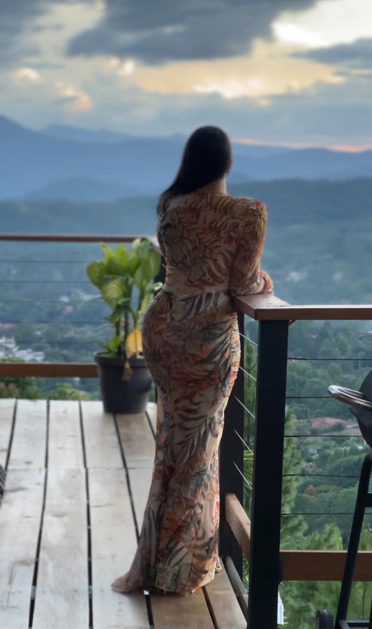 Vestido de noche floral multicolor de lujo