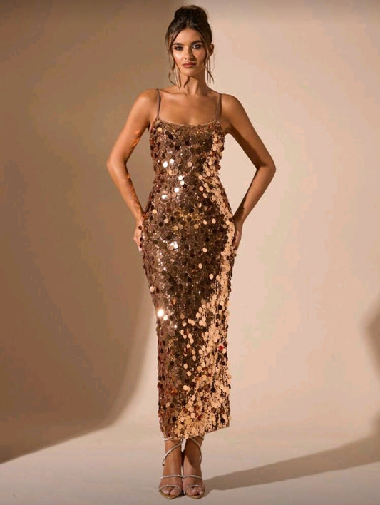 Vestido Dorado Formal con Lentejuelas