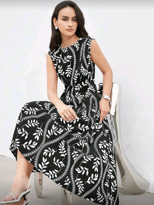 Vestido Blanco y Negro de botones y con tira ajustable en la cintura