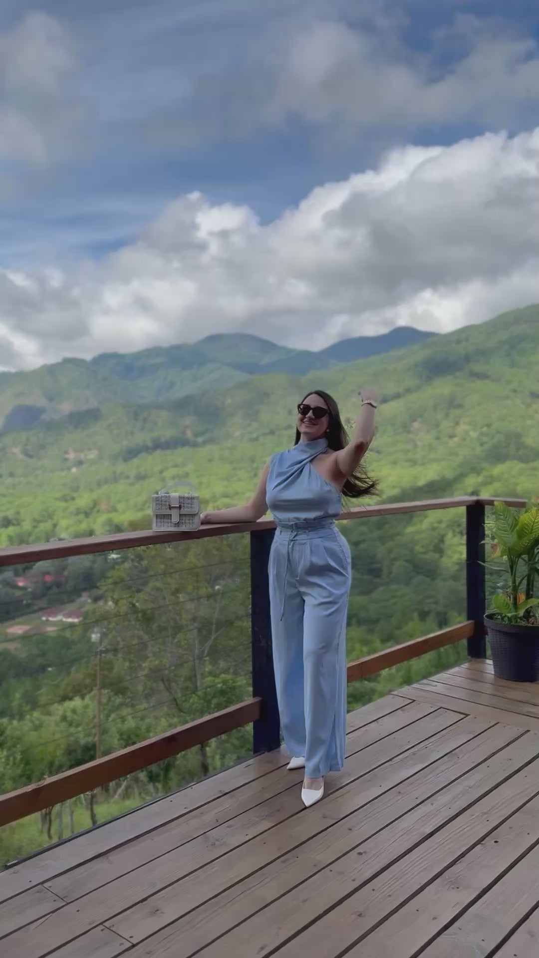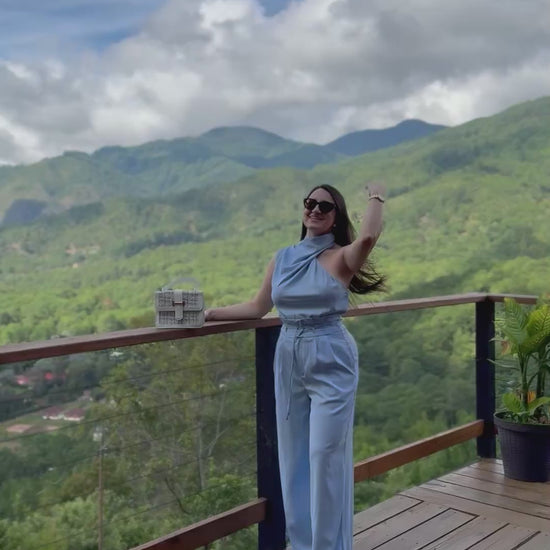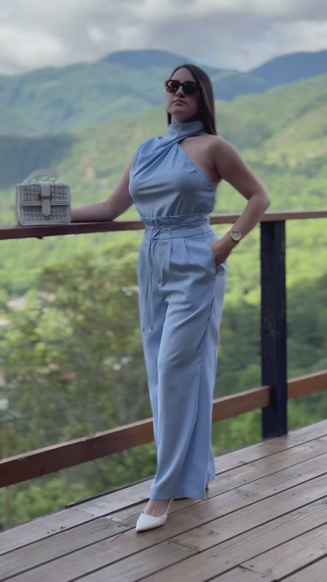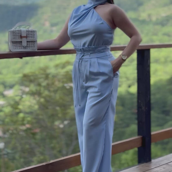 Conjunto azul claro de dos piezas de cuello alto y pantalón