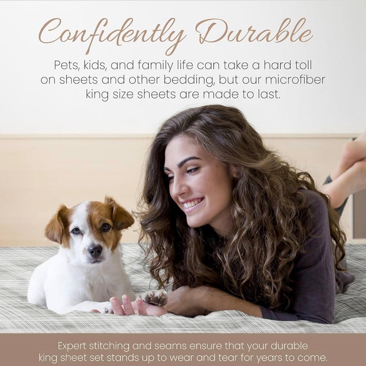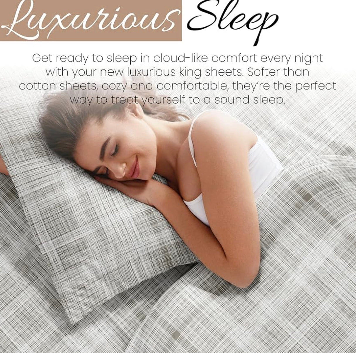 ienjoy Home 3 Piece Thatch Patterned Home Collection Premium Ultra Soft Bed Sheet Set, King, Gris