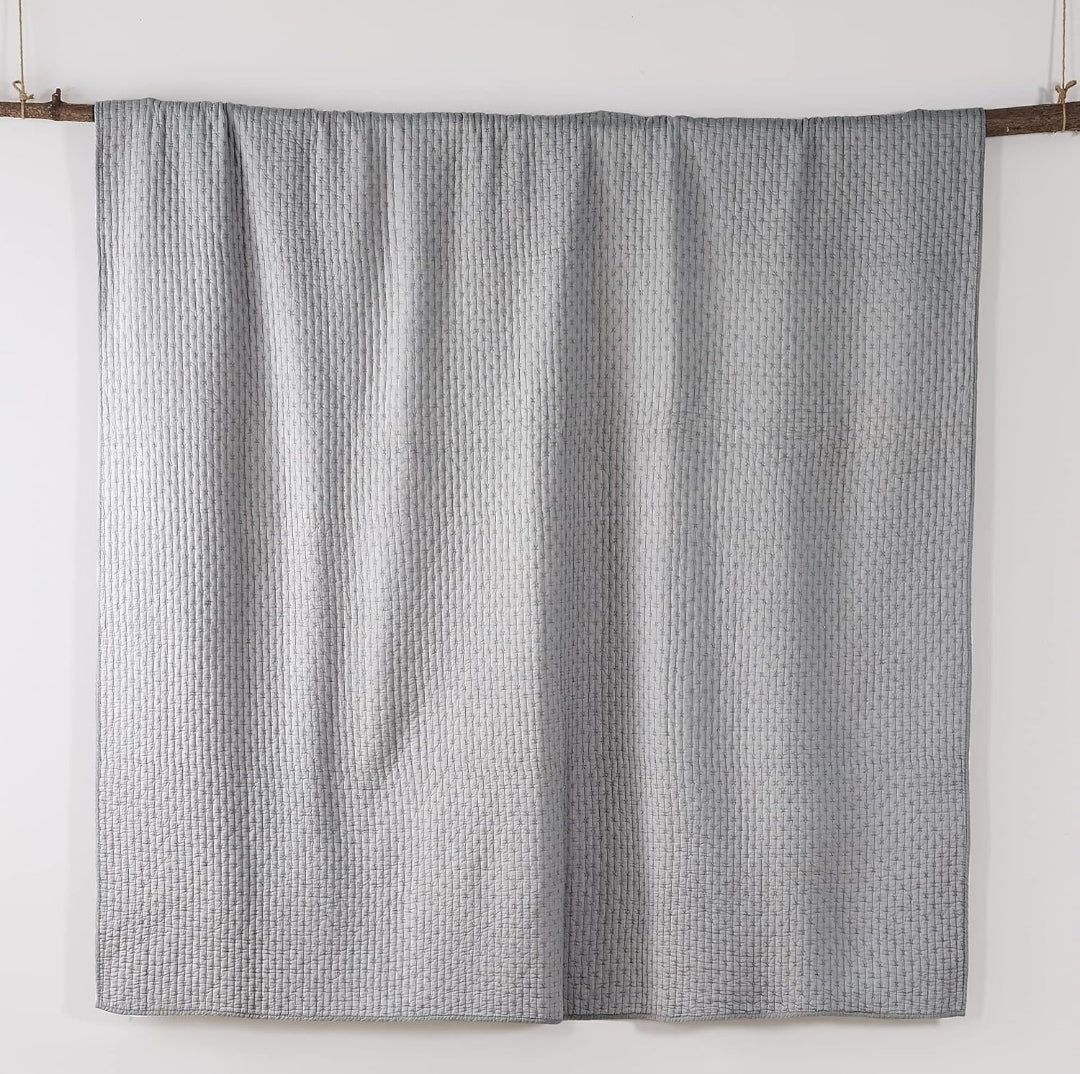 Levtex Home Cross Stitch Reversible Twin XL/Twin Quilt Set (68x86in) and 1 Pillow Sham (26x20in) - Stitch Texture - 2 Piezas, Gris Claro, Twin