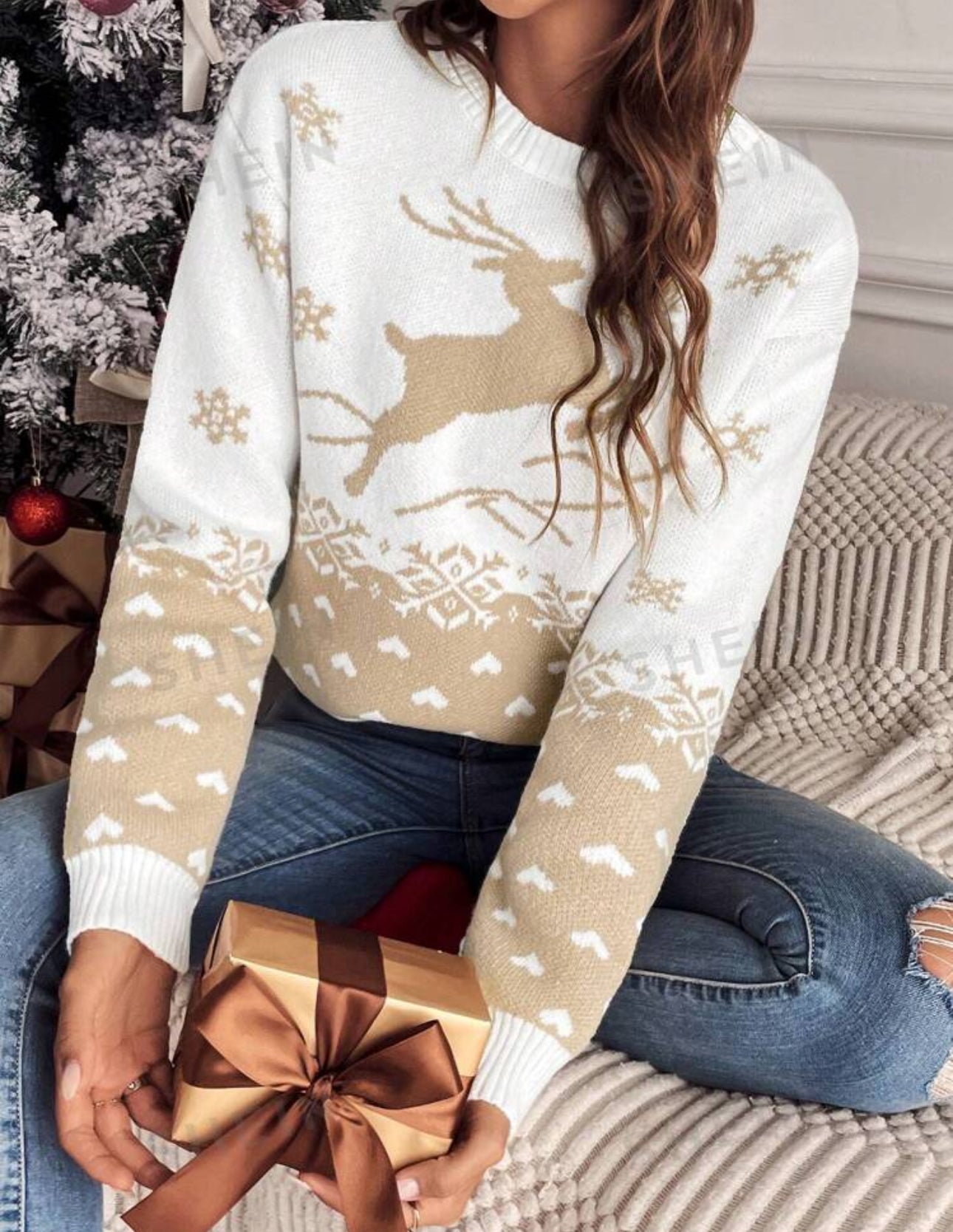 Suéter de navidad dorado reno dorado