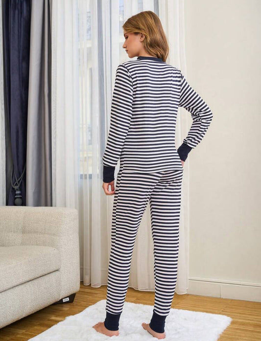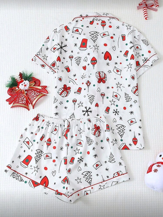 Set de Pijama Blanca Navideña con detalles rojos con mangas largas y pantalón