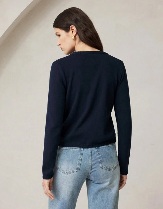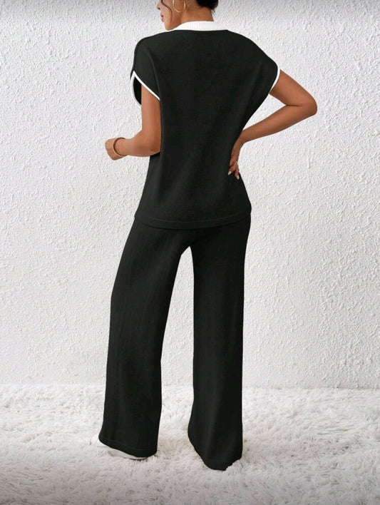 Conjunto Negro Informal con Cuello Redondo Blanco y Pantalón Ajustable