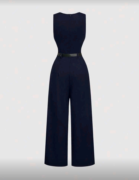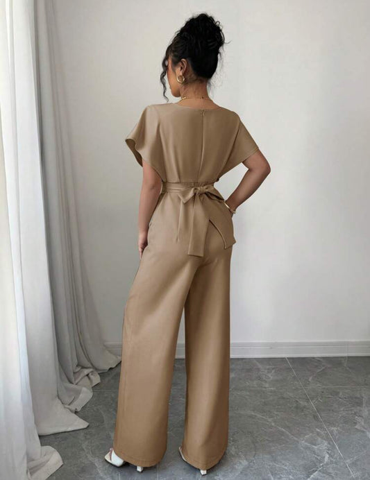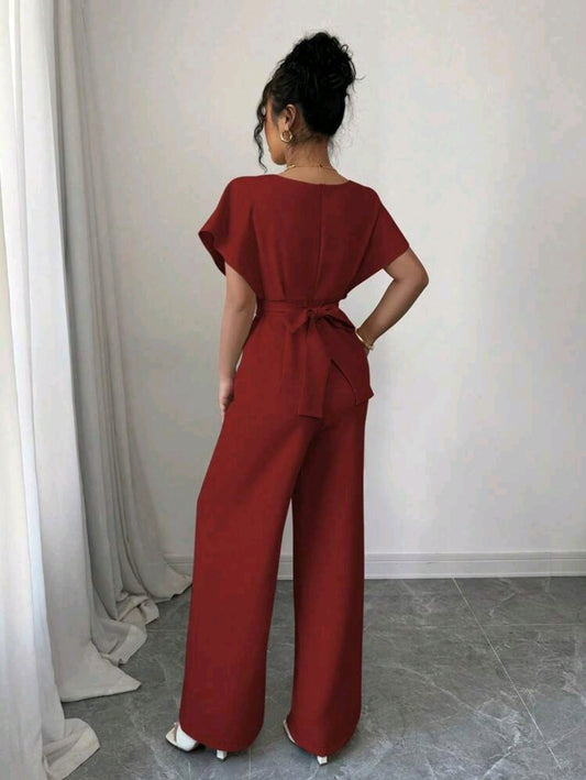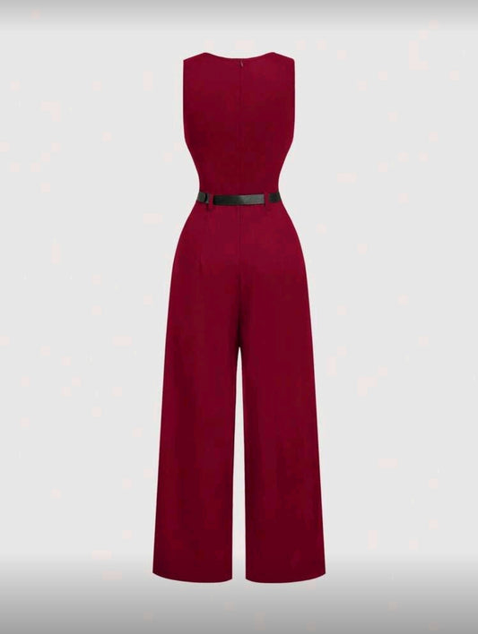 Jumpsuit Rojo de Pierna Ancha con Cinturón