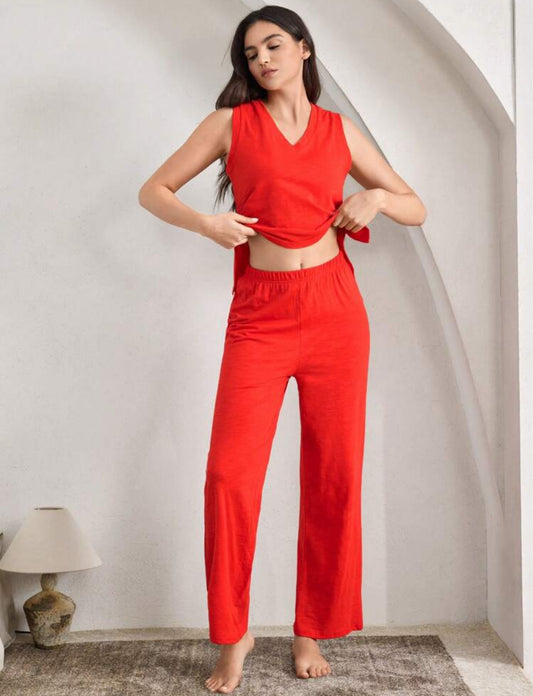Conjunto de pijama roja suelta, suave y cómoda de algodón