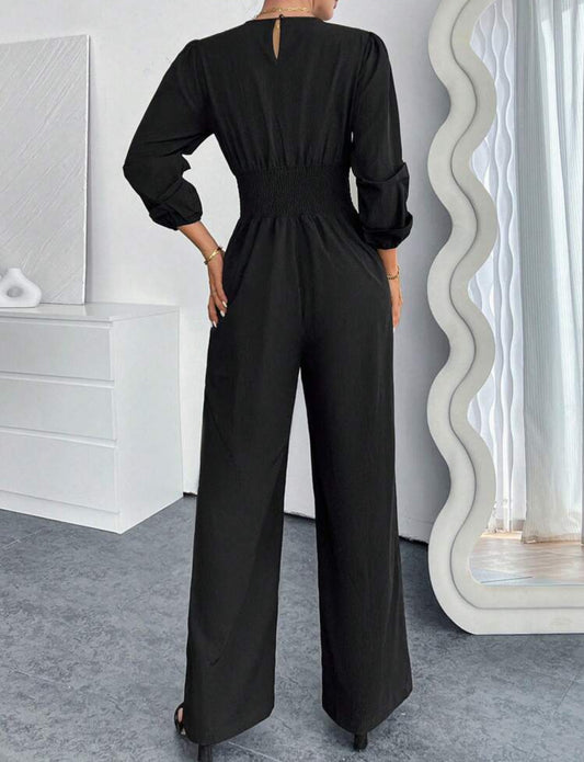 Jumpsuit Rojo Holgado de Pierna Ancha y Cuello en V