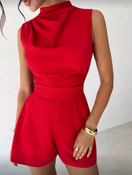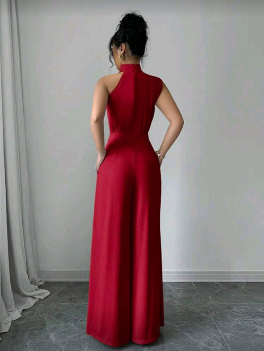 Jumpsuit Rojo de Cintura Ajustada y Pierna Ancha