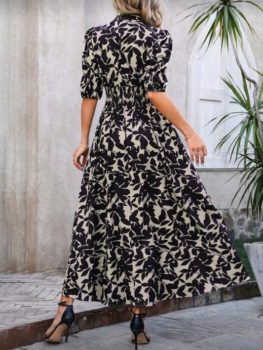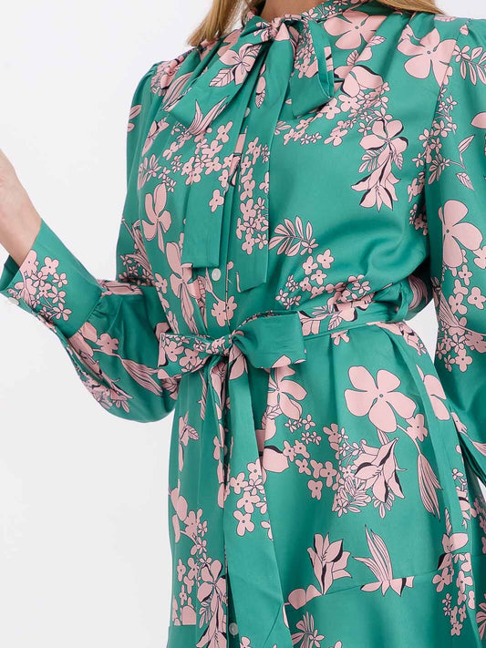 Vestido Verde y Blanco Maxi de Botones y Manga Larga