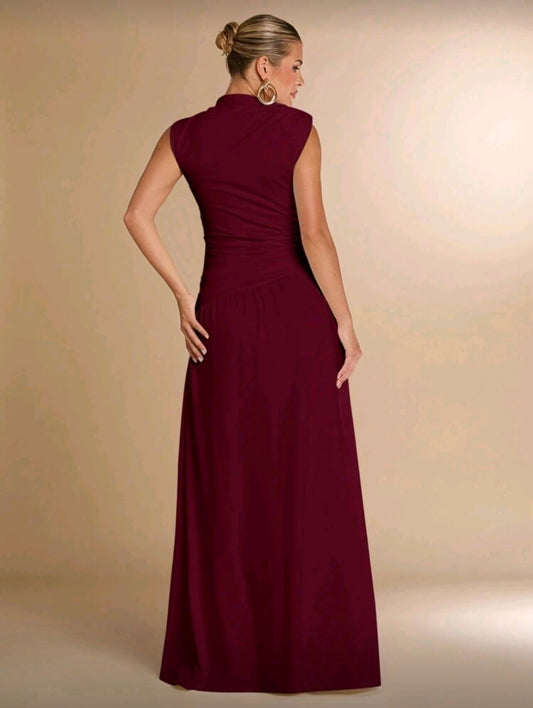 Vestido Rojo Oscuro Elegante con Cuello Alto