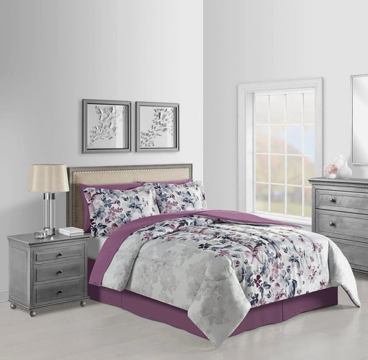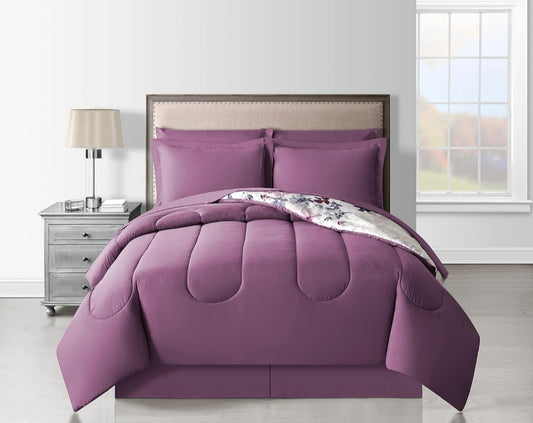Fairfield Square - Lanwood Monica, Bed-in-A-Bag Set, California King, Floral Reversible, Blanco/Lila, 8 Piezas, King