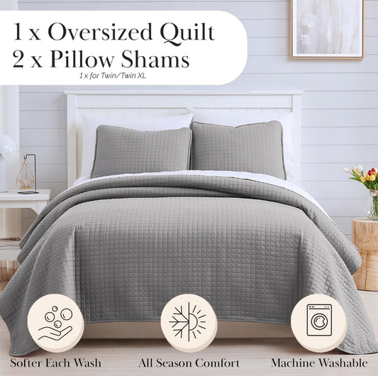 Southshore- Fine Linens, Inc. Oversized Quilt Set Soft Microfiber, 3 Piezas, Gris Claro, Queen